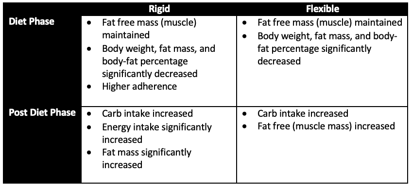 Study: Flexible vs. Rigid Dieting in Resistance-Trained Individuals Seeking to Optimize their Physiques: A Randomized Controlled Trial. Conlin et al. (2021)