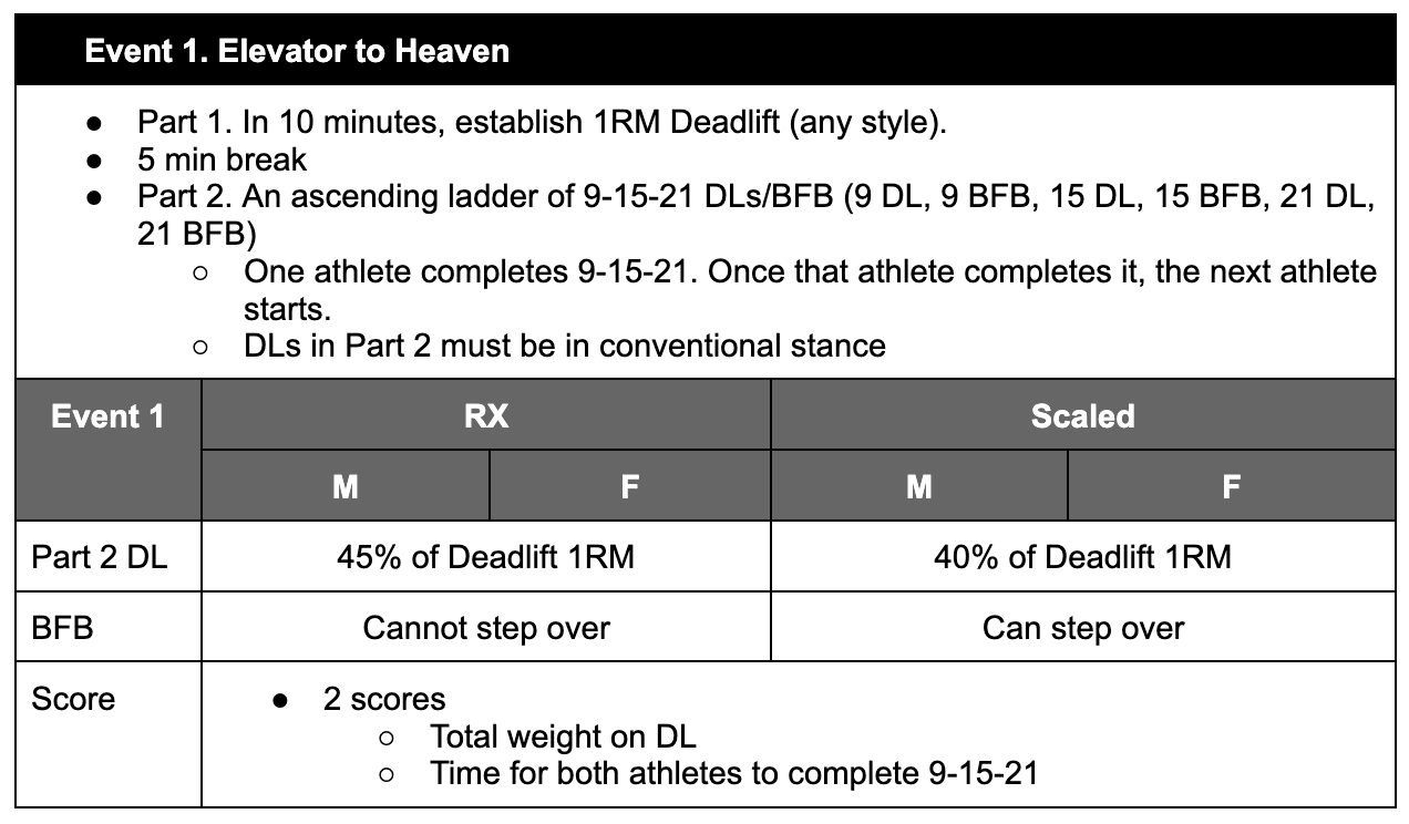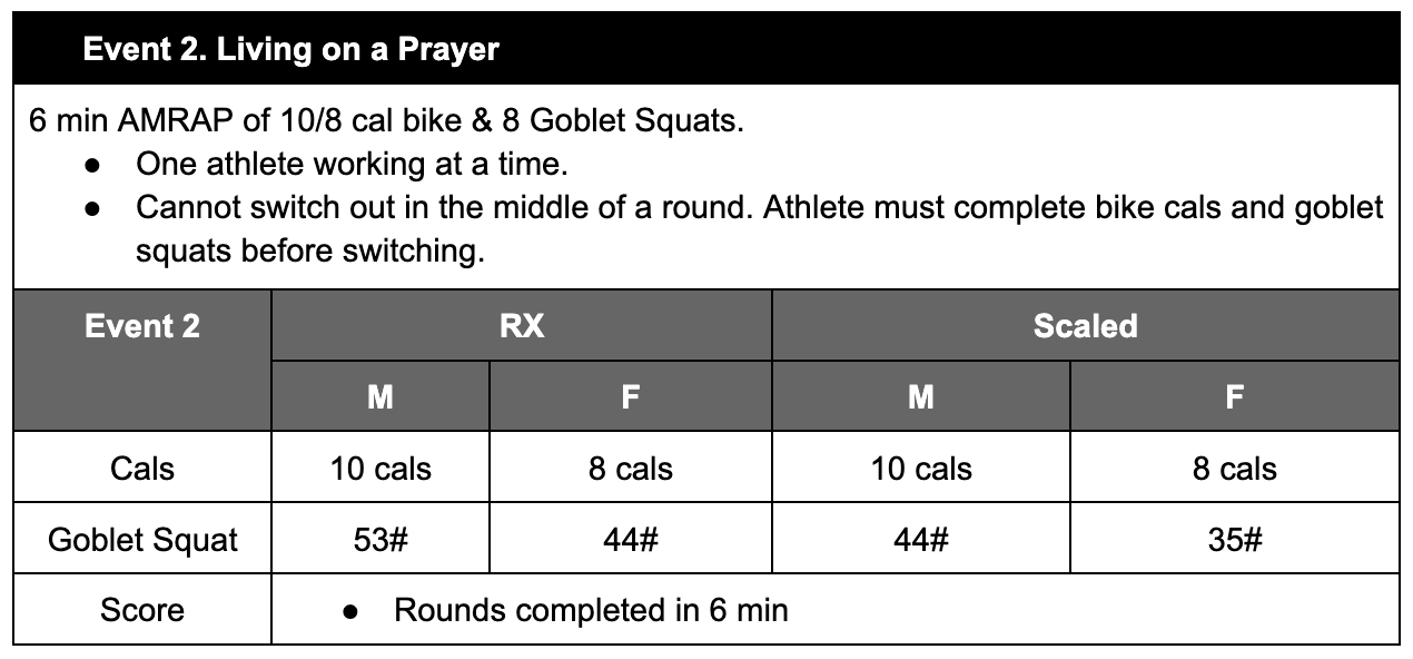 Workouts: There will be four total events. Be on the look out for strategy ideas and tips!